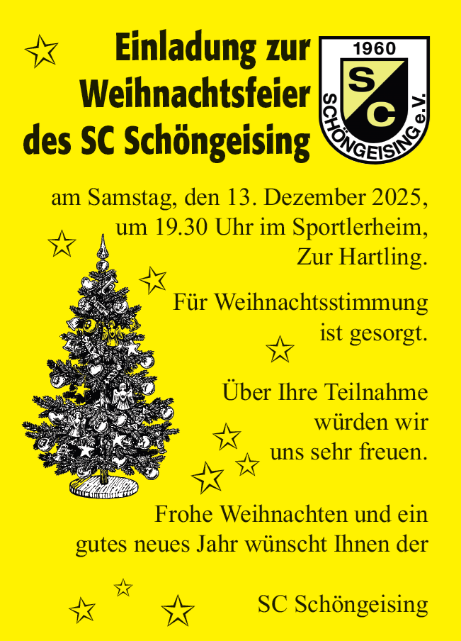 Weihnachtsfeier Kalender Zum Kalender hinzufügen Zu Timely-Kalender hinzufügen Zu Google hinzufügen Zu Outlook hinzufügen Zu Apple-Kalender hinzufügen Einem anderen Kalender hinzufügen Als XML exportieren Wann: 13. Dezember 2025 um 19:30 2025-12-13T19:30:00+01:00 2025-12-13T19:45:00+01:00 Wo: Sportheim Zur Hartling 82296 Schöngeising Verein